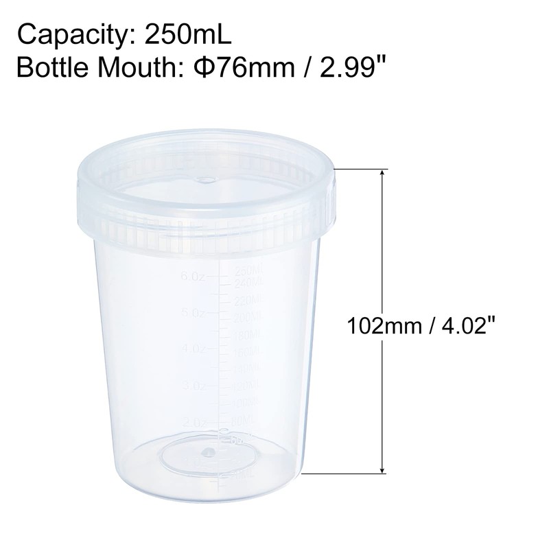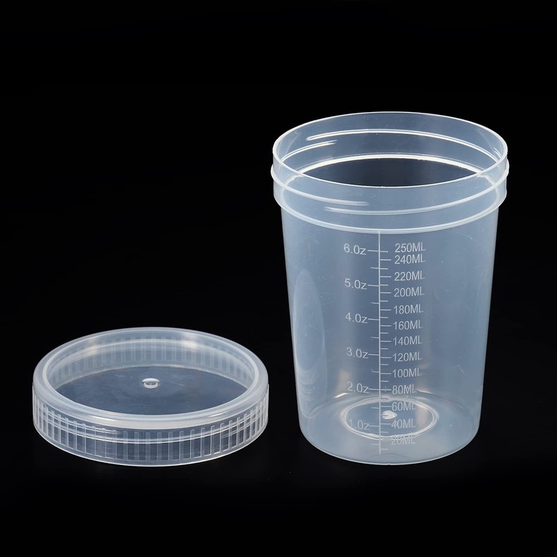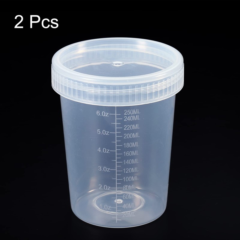 PATIKIL 250 ml sample cup with lid, 2 pack urine cup with screw cap, sample container, leak-proof, clear