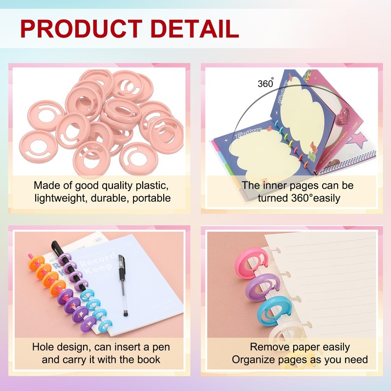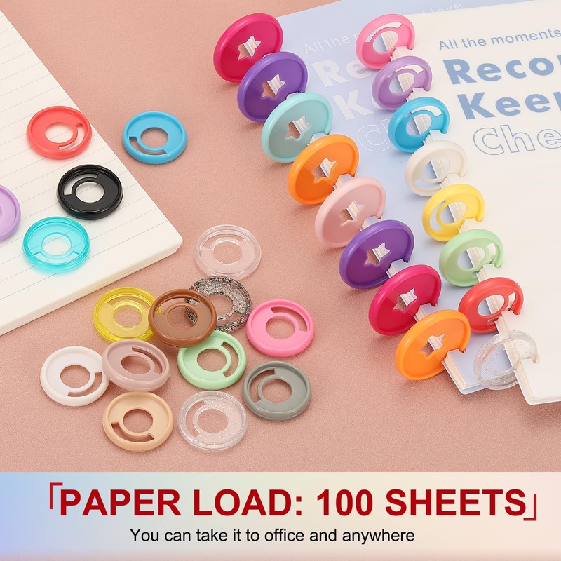 - Advantage: These binder disc rings are made of good quality plastic, lightweight, durable, and portable. You can take it to office and anywhere; The hole in the center of the binder disc rings allows you to insert a pen and carry it with the notebook; Can hold up to 100 sheets of paper, high paper storage efficiency, and sufficient quantity to meet the needs of most people