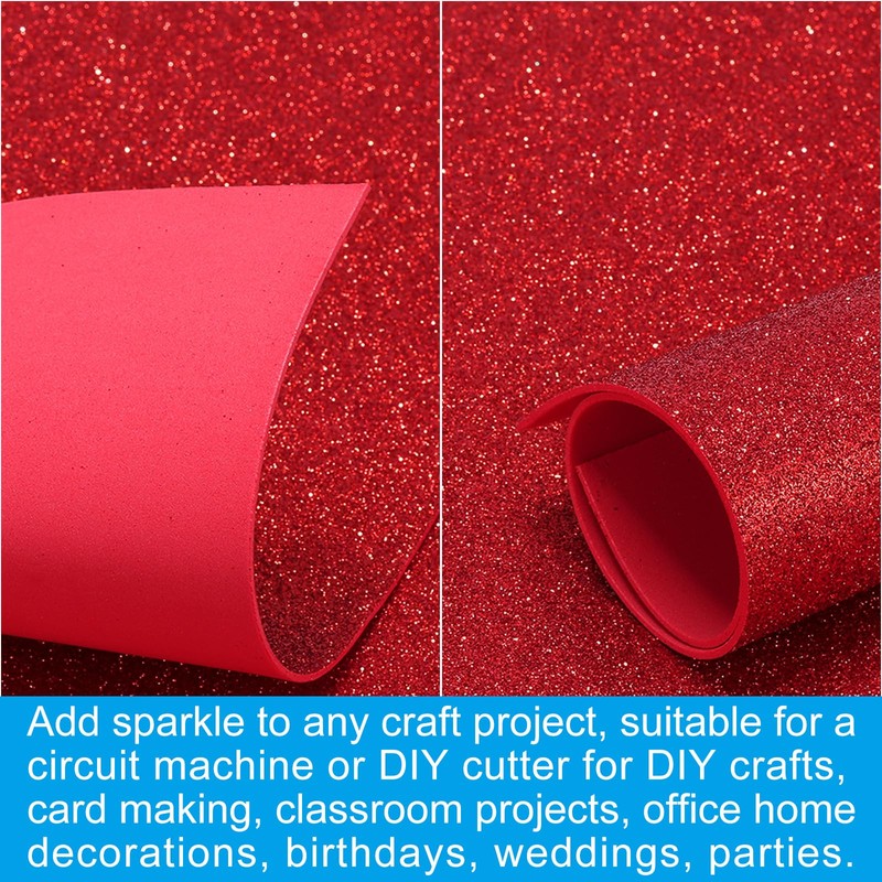 - Advantage: The foam paper is made from a layer of shiny powder and EVA foam Non Adhesive, the glitter paper felt like sandpaper and will not peel off, is good for adhering to any paper materials, and can be long-lasting and beautiful. The glitter foam will add sparkle to any craft project, suitable for a circuit machine or DIY cutter.