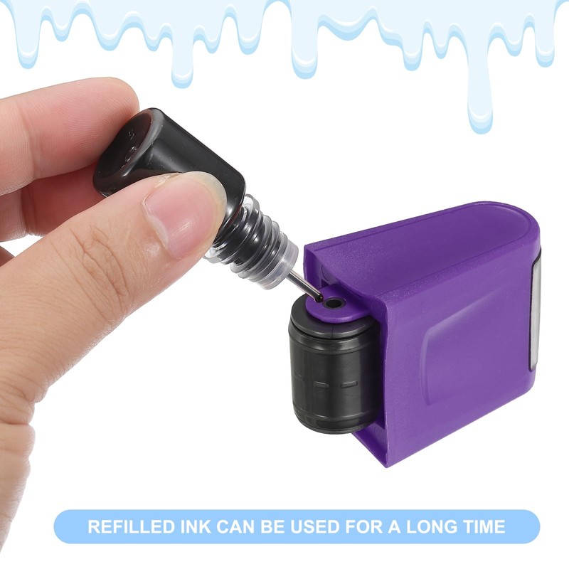 • Specification: Material: Plastic; Color: Purple; Stamp Size: 3.8 x 2.7 x 6.1cm / 1.5 x 1 x 2.4 inch ( L * W *H ); Character size: 1.7cm / 0.7 inch; Ink Bottle Size: 5.5 x 2cm / 2.2 x 0.8 inch ( H * W ); Package Content: 2 x Roller Stamp, 1 x Black Oil