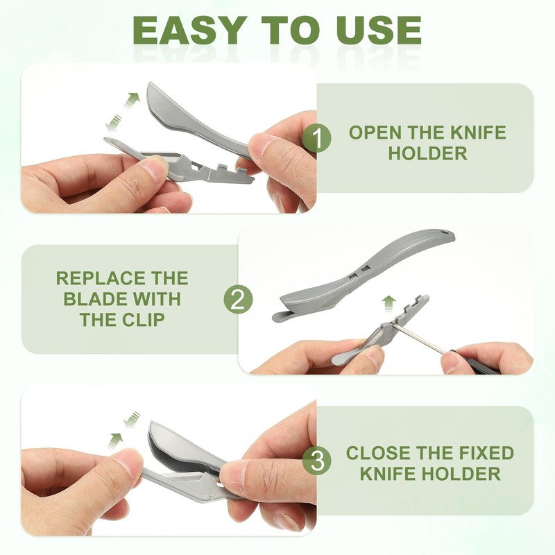 - Advantage: The wrapping paper cutter is made of plastic with a frosted texture, which is sturdy and wear-resistant. The handle is comfortable to hold and durable. The wrapping paper cutter is safe. The design of the built-in blade can fix the blade in the plastic handle, which prevents your fingers from touching the blade, and can ensure that you can make precise cuts and provide the necessary support for it. When you need to replace the blade, you can easily replace it with a clip to ensure