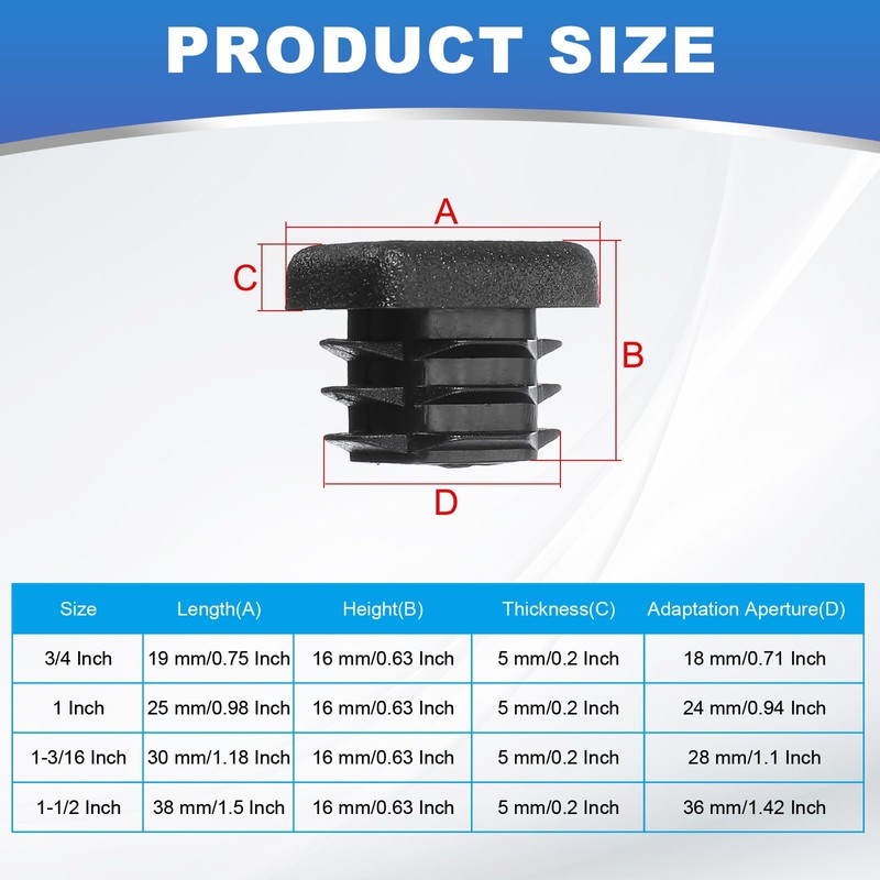 Plastic Tubing End Caps suit stainless steel, aluminum, metal, and other tubular rods. They can also protect sliders on chair legs, table legs, bookshelves, and patio furniture.