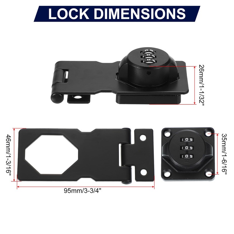 - HASP LOCK TOTAL SIZE - Our password sliding door latch measure 3-3/4″(95mm) x 1-3/16"(46mm) x 1-1/32"(26mm) (L*W*H), ensuring that they fit most cabinets and drawers