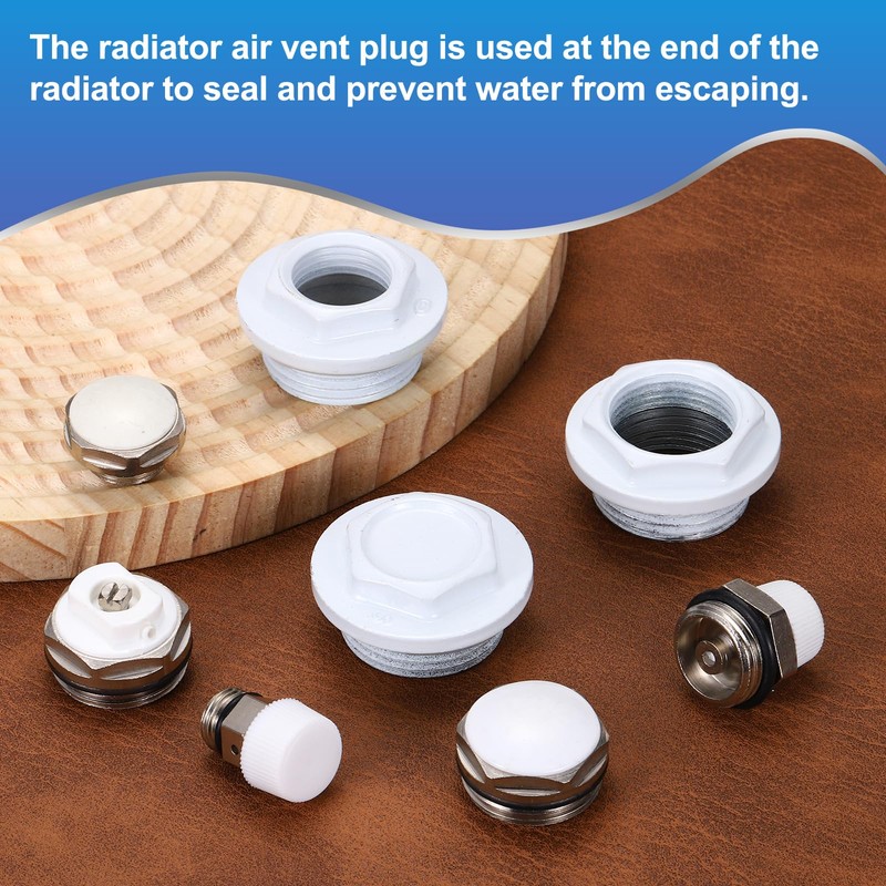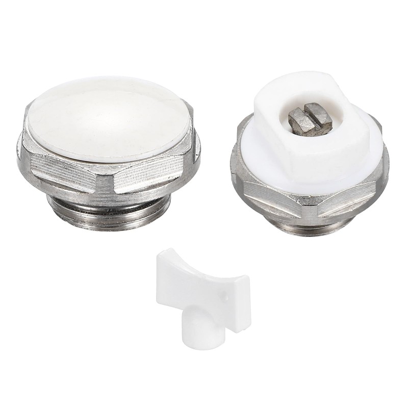 - Color: Silver, White; Material: Nickel Plated Brass, Nylon; Overall Size: 24x35mm/0.94x1.38inch,24x16mm/0.94x0.63inch (OD*H); Thread: 3/8"BSP Male, Thread Diameter: 16.662mm/0.66inch; Max. Working Temperatures: +120°C; Max. Working Pressure: 1,0MPa (10 bar); Packing List: 1 x Radiator Air Vent Valve, 1 x Radiator Plug,1x Radiator Valve Key