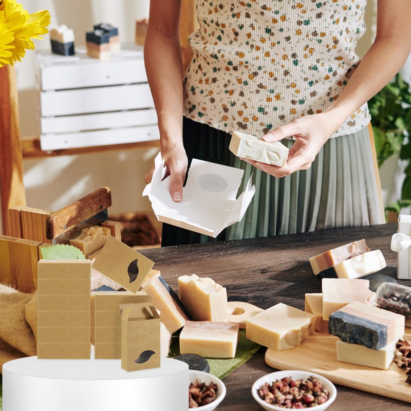 - Advantage: The window on the front of each soap box allows customers to see the items inside without opening the box. These soap boxes provide a blank canvas for personal design. Add your logo, sticker, or decorative ribbon to customize the boxes and create a cohesive brand identity. Made from durable paperboard, the sturdy construction ensures that the soap boxes maintain their shape, preventing damage to the contents during handling.