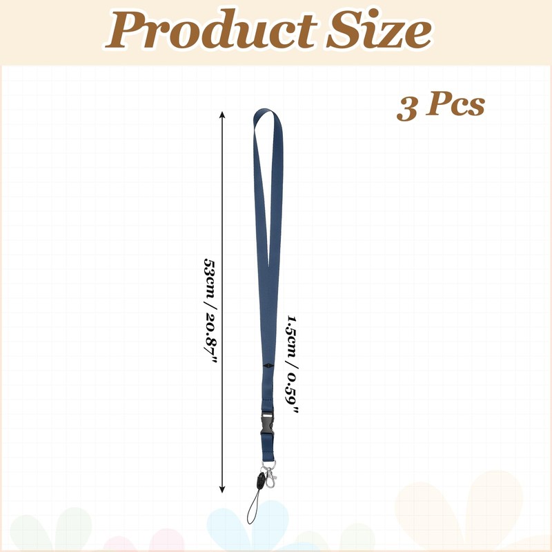 - Material: Polyester, Nylon, Alloy; Color: Dark Blue; Lobster Clasp Width: 1.5cm / 0.59inch; Overall Length: 53cm / 20.87inch; Packing List: 3 packs of key lanyards