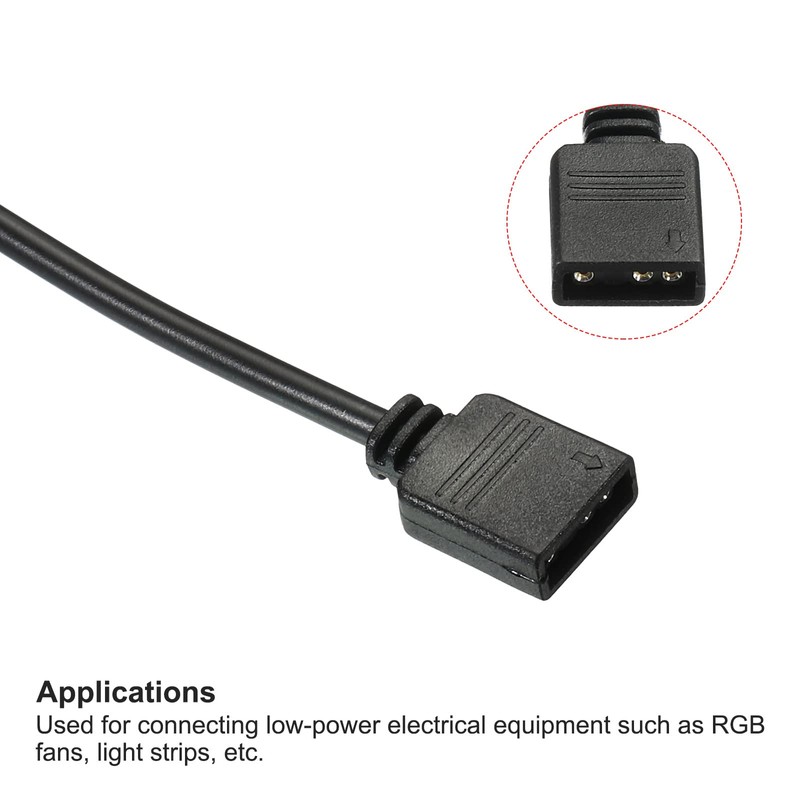 - Application: The male extension cable is designed to extend cables and control power supplies, commonly used in low-power electrical equipment such as RGB fans, light strips, etc.