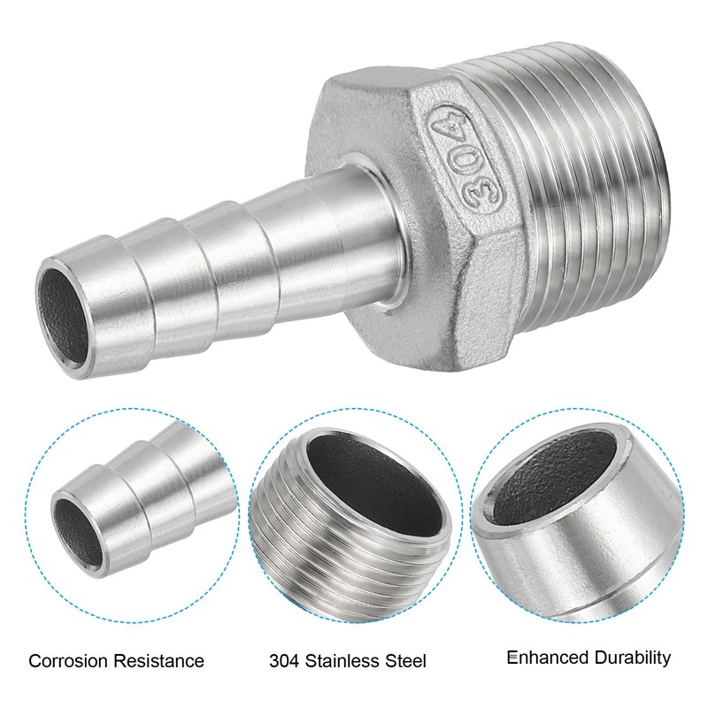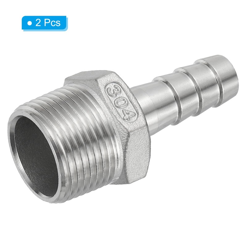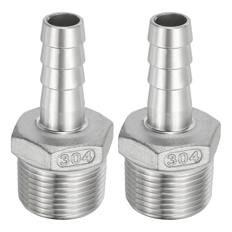 - Material: 304 Stainless Steel; Fitting Shape: Straight; Thread Size: 3/4"; Barb Outer Diameter: 13mm / 0.51inch; Overall Size: 59x27mm / 2.32x1.06inch(L*W); Package Content: 2pcs x Straight Barbed Hose Fittings