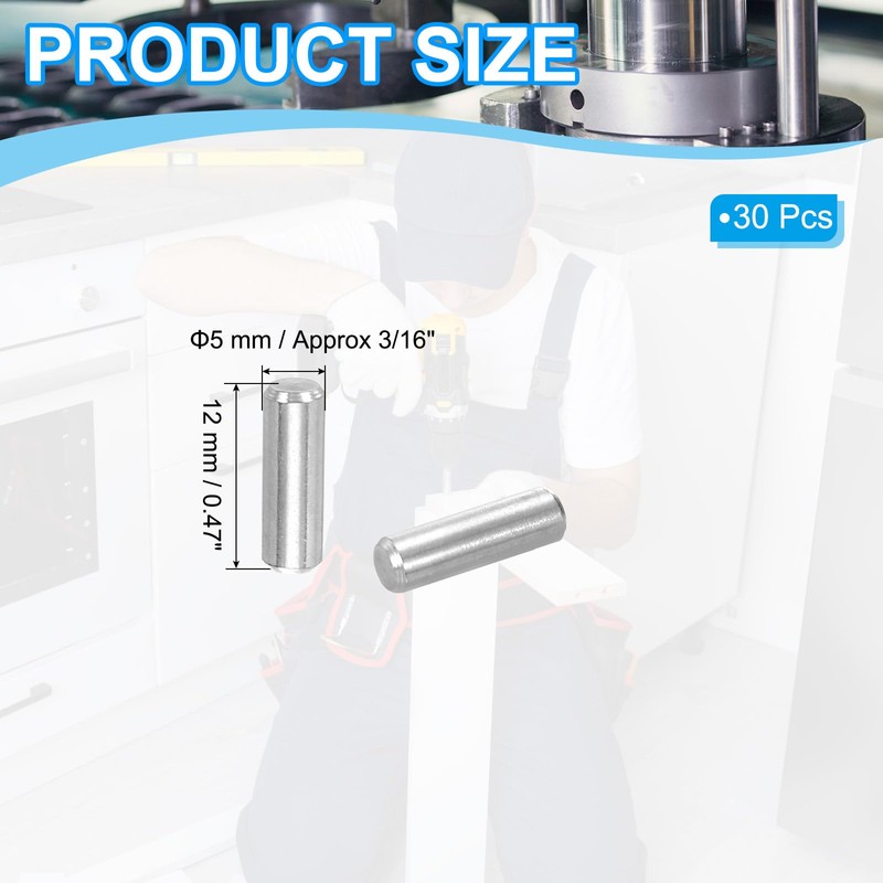 PATIKIL 304 Stainless Steel Dowel Pin 5x12 mm (3/16" Dia), 30 Pcs Hardened Metal Dowel Pins Bunk Bed Pegs Pin Replacement Hardware for Shelf Furniture Assembly DIY