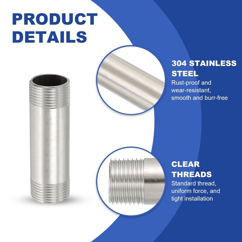 - Material: 304 Stainless Steel; Thread Size: 3/4" BSP Male x 3/4" BSP Male; Length: 8cm / 3 inch; Outer Diameter: 27 mm / 1.06 inch