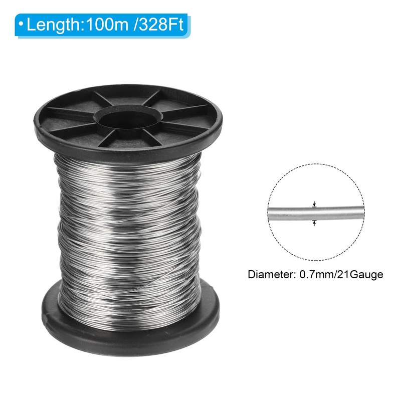 - Specification Color: Silver Style: Single strand stainless steel wire Material: 304 Stainless Steel Diameter: 0.7 mm/ 21 Gauge Total Length: 100 m/ 328 Ft Packing List: 1 Roll x Stainless Steel Wire