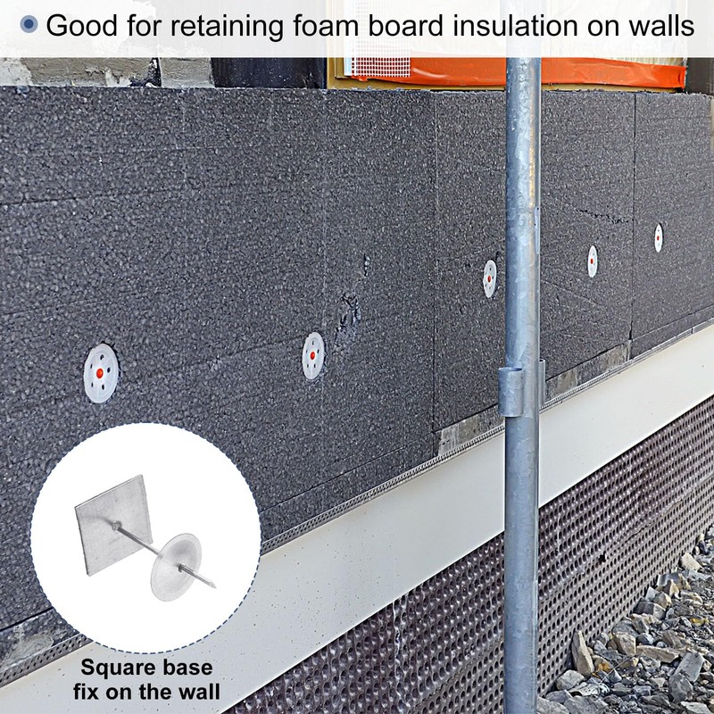 Function - The base of the insulation pin is self-adhesive,it allows you to fix insulation panels easily and conveniently. Metal point makes the nail easy to penetrate into different insulation materials and the washers can help you fix the insulation board in position better.