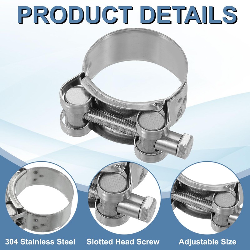 - Feature: Made of 304 stainless steel with a fine polish, our hose clamp is robust and long-lasting, offering resistance to salt, water, oil, acid, heat, and cold. Firmly locked, perfect for tightly securing ducting in place