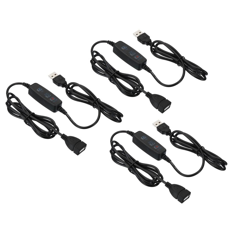 PATIKIL 3PCS LED Strip Dimmer Switch USB Female to Male Extension Cord 10 Speed Dimmer with 3 Buttons for LED Strip Light Black