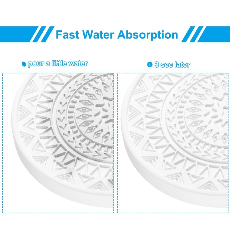 - Advantage: The absorbent dishes is made of diatom mud, which contains tiny pore that allow it to absorb and evaporate water quickly. With high absorption capabilities of diatom mud, our absorbent drip trays can quickly dry spilled water keeping your countertop and floors dry and water-free. Diatomaceous saucer is easy to clean, non-slip, and stain-resistant.