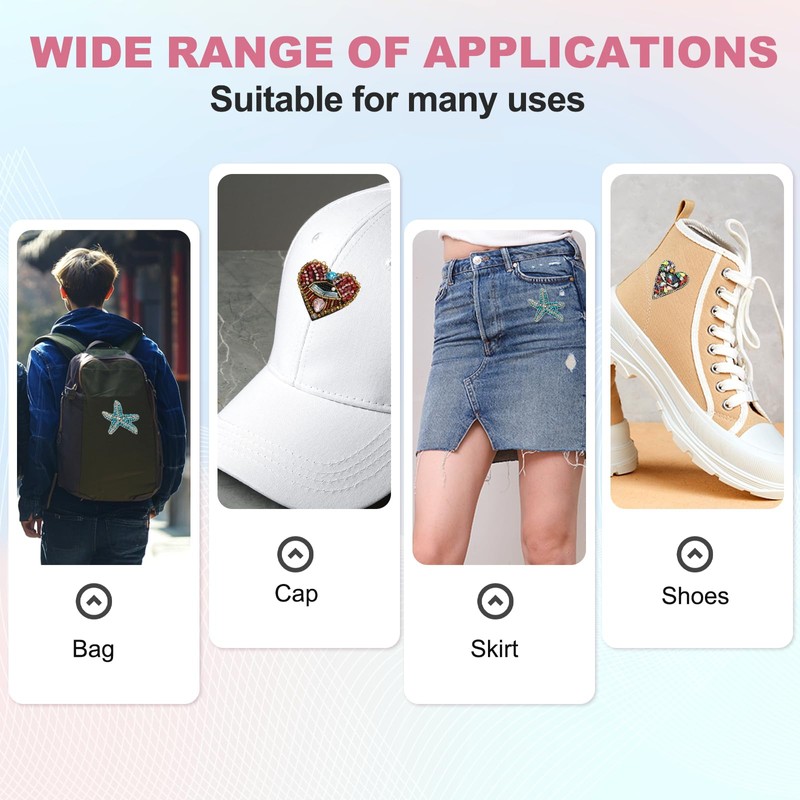 - Application: These beaded patches offer a unique style and are simple to use. They are suitable for decorating, mending clothes, and covering spots that cannot be washed out, and can be applied to various items such as clothing, bags, jeans, shoes, hats, jackets, scarves, curtains, and DIY crafts.
