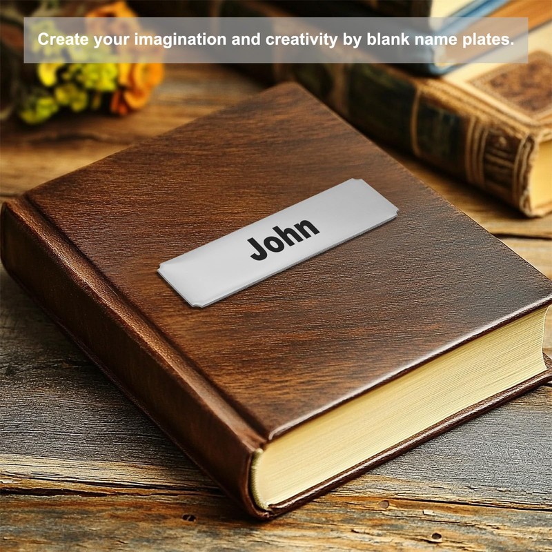 - Advantage: Made of durable Stainless Steel material, hard and waterproof, scratch resistant and abrasion resistant, easy to clean even if dirty, not easy to bend; The rounded corners design is beautiful and not easy to scratch your fingers. An adhesive-backed design can attach the nameplate firmly to the object without worrying about falling off. Blank surface allows you to use your imagination and creativity to create your nameplate for your custom DIY need.