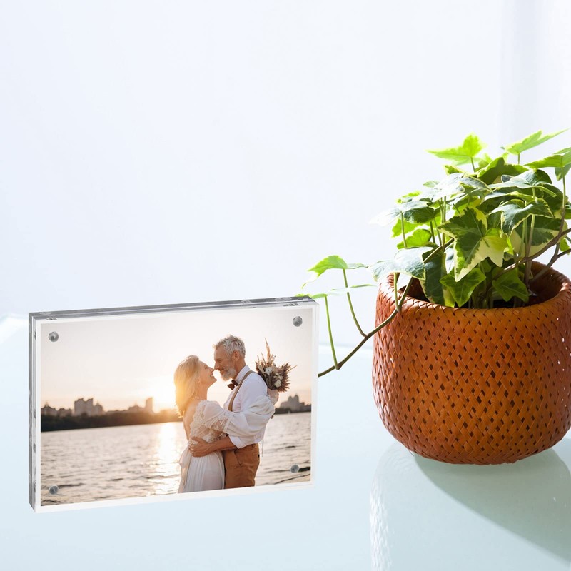 - BENEFITS: Made of acrylic, clear vision and good color rendition can help you see what is pictured. The square design allows you to display your photos horizontally or vertically, not only can you display your photos, but also can display memories of postcards, banknotes, tickets, greeting cards. Great gift for family and friends on Christmas, Halloween, Valentine's Day, New Year and Anniversary Protective film is attached to the surface