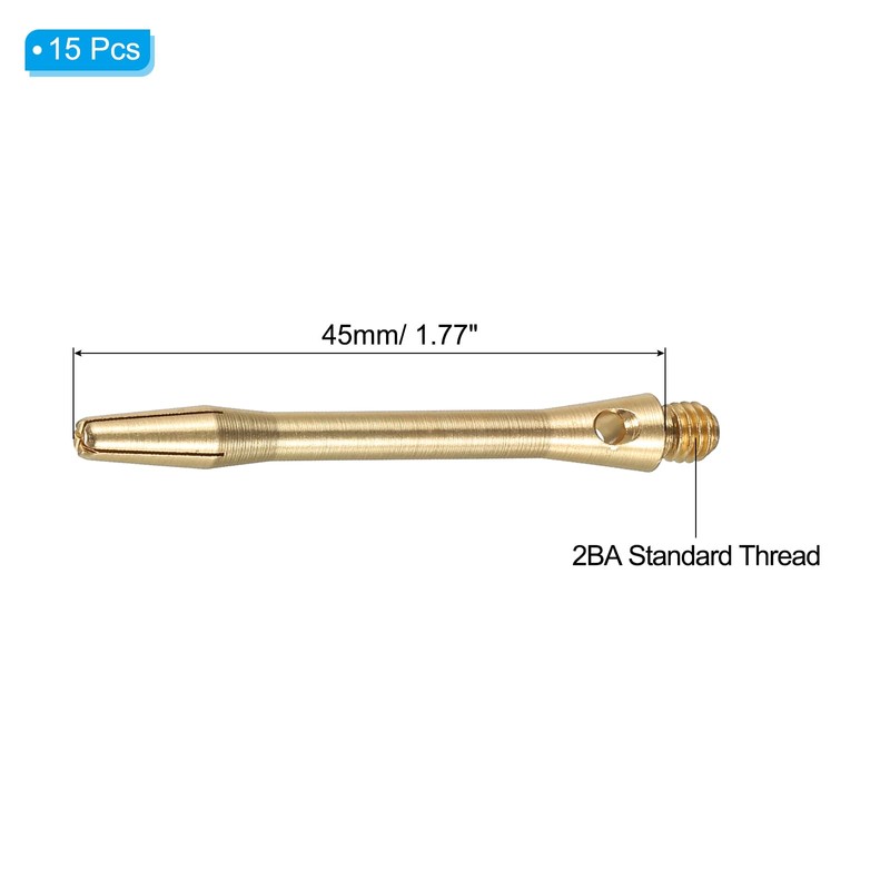 PATIKIL 45mm Aluminum Dart Shafts, 15 Pack Medium 2BA Thread Dart Stems Replacement Dart Accessories, Brass