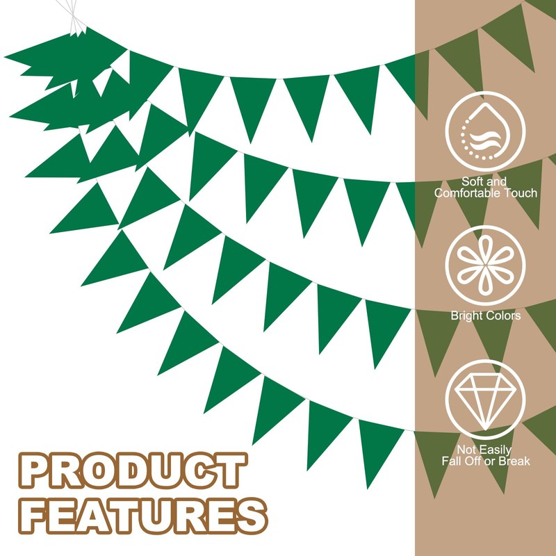 Banner flags use felt fabric, a soft and comfortable touch, the pennant cutting is neat, will not easily fall off or break is wear-resistant, and is reusable.