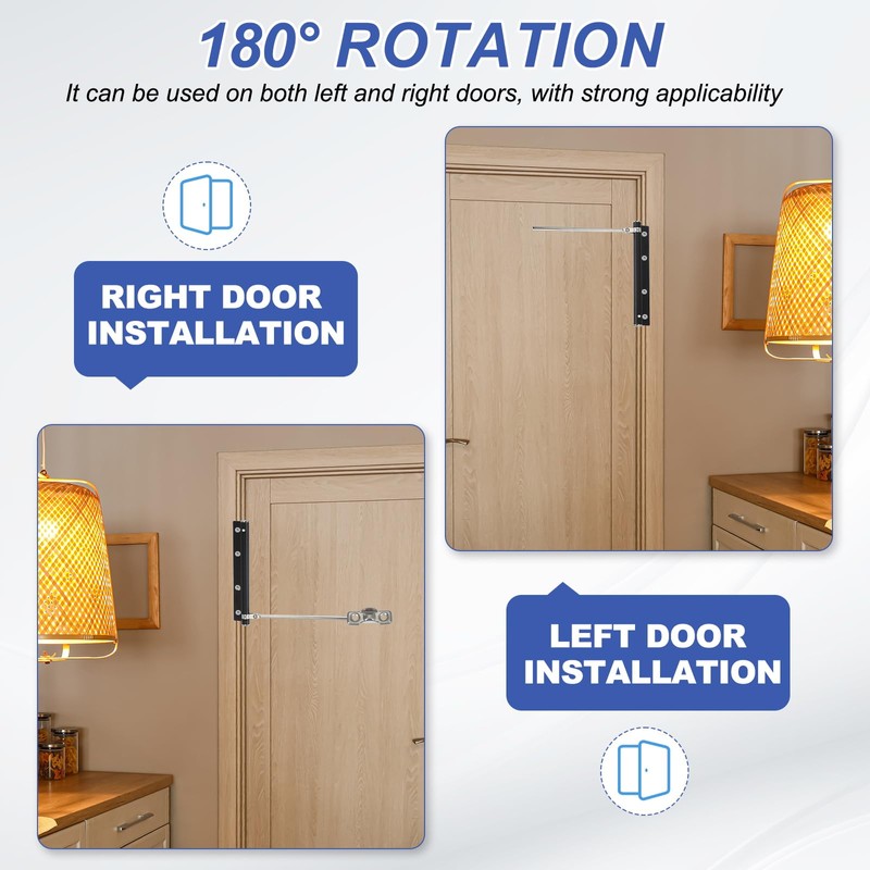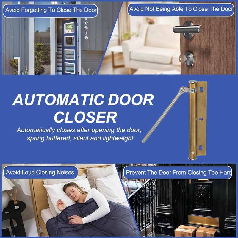 The spring door closer converts a hinged door into an automatic closing door, providing convenience for users who do not have to close the door manually every time. The closing arm can swing 150°, which is suitable for a variety of doors.