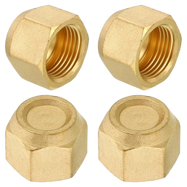 PATIKIL 5/8" Brass Flare Cap, 7/8-14UNF Female Thread 4Pcs SAE Flare Fitting 45 Degree Hex Pipe Fittings for Air Conditioner Refrigeration
