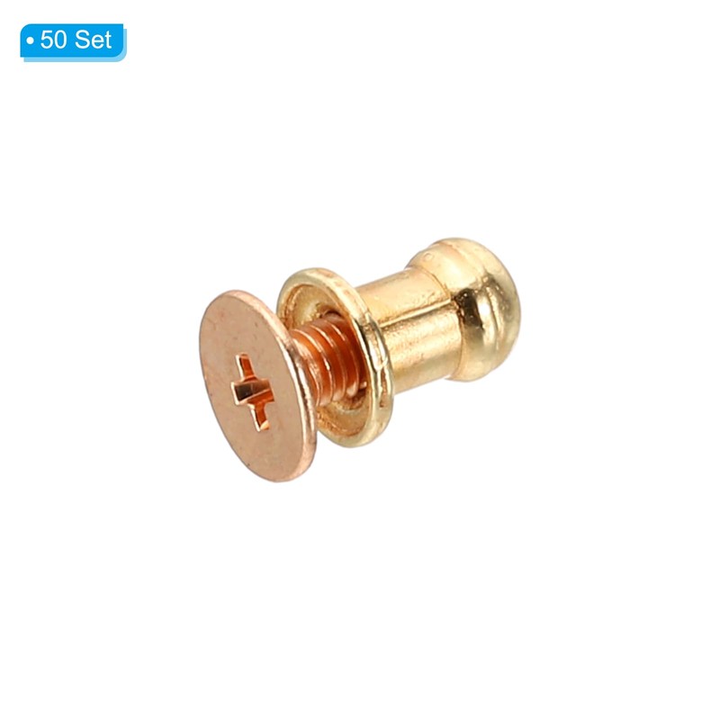 PATIKIL 5 mm Leather Rivets, 50 Sets Round Button Head Studs Metal Screw Studs Posts Chicago Screws Rivet for Clothing Leather Crafts Fabric Shoes Punk, Gold Tone