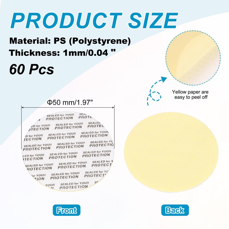 PATIKIL 50 mm Schaumstoff-Deckeleinlage, 60 Stück, selbstklebend, rund, PS, druckempfindliche Dichtungen, widerstandsfähiger Manipulator für Kunststoff, Glas, Flaschenverschluss, Konserven, Fläschchen