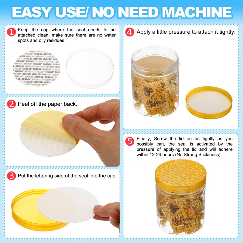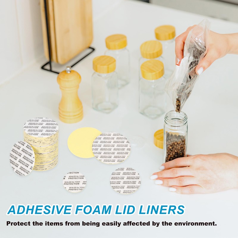 - 【Anwendung】Diese druckempfindlichen Dichtungen können mit verschiedenen Behältern verwendet werden und eignen sich für Glas-, Kunststoff-, Metalldosen und runde Behälter mit Metall- oder Kunststoffdeckeln und Verschlüssen. Es kann verwendet werden, um Gewürze, Kosmetika, Haarpflegemittel, Reinigungsmittel, Toilettenartikel und andere Pulver, Feststoffe usw. zu versiegeln.