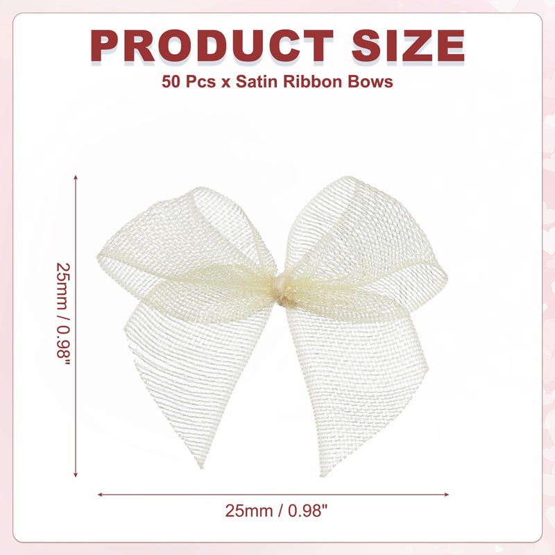 PATIKIL 50 Pcs Gauze Ribbon Bows 1 Inch Small Twist Tie Bows Craft Bows for DIY Gift Wrapping Wedding Birthday Valentine's Day Mother's Day, White