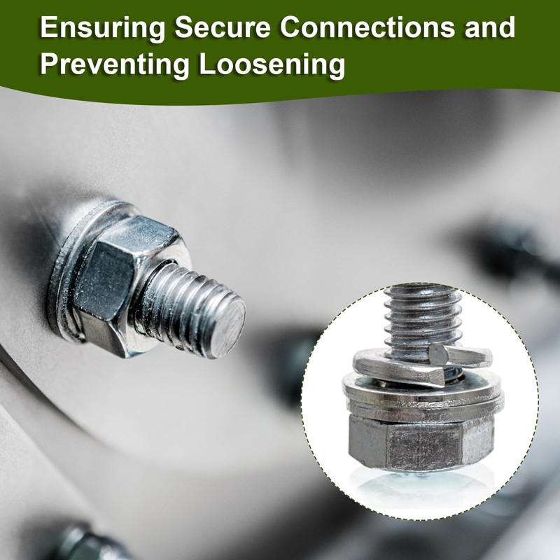 - Application: Spring washers are suitable for use with screws, nuts, and bolts of the same size, providing secure connections for moving parts and preventing loosening. Widely used in furniture repair, outdoor construction, and electrical maintenance