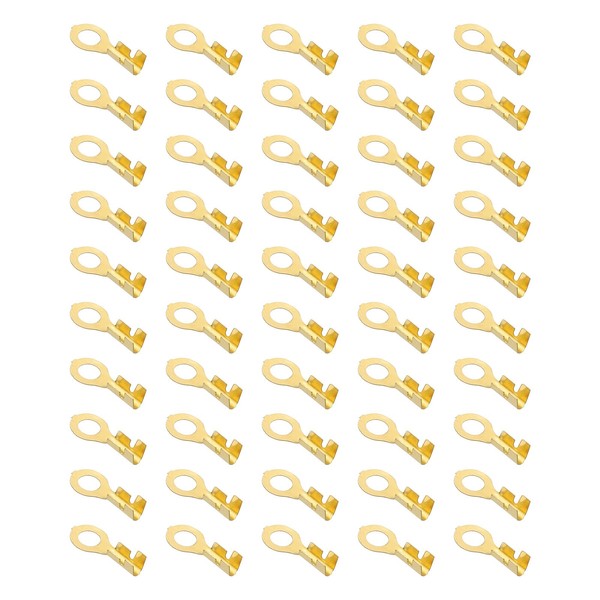 PATIKIL 50pcs Copper Ring Terminals for Connecting M4 Wire Cables Copper Open Valley Wiring Cable Lugs Non-Insulated Kit for Lighting Grounding