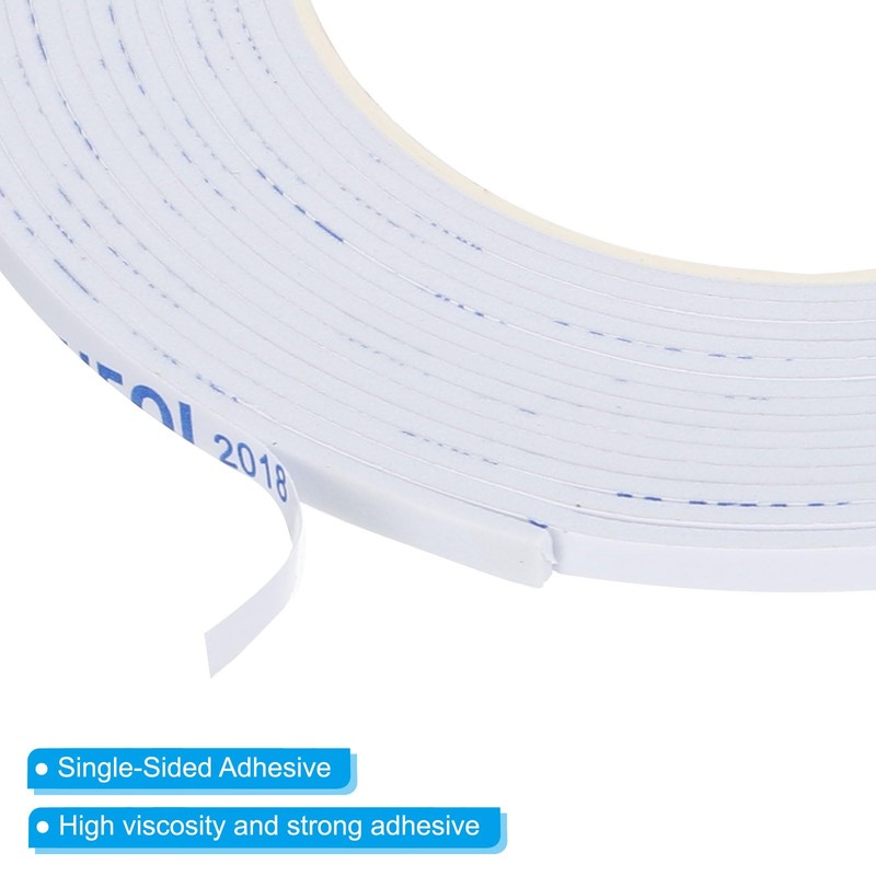 - Material: EVA Foam; Temperature Resistance: 38℃ Length: 5 Meters / 16.4 Feet; Width: 5 mm / 0.2 inch; Thickness: 2 mm / 0.08 inch; Color: White; Packing List: 1 Roll x EVA Single Sided Foam Tape