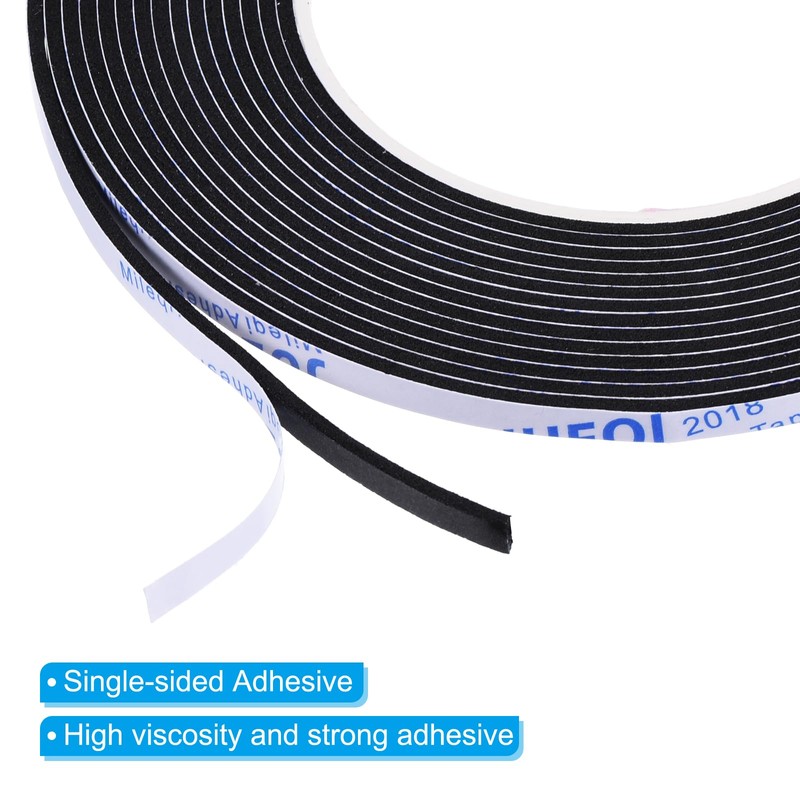 PATIKIL 5m/16.4ft Sealing Foam Tape, 5mm Wide 2mm Thick Single Sided Weather Stripping Door Seal Strip for Window Door Insulation, Black