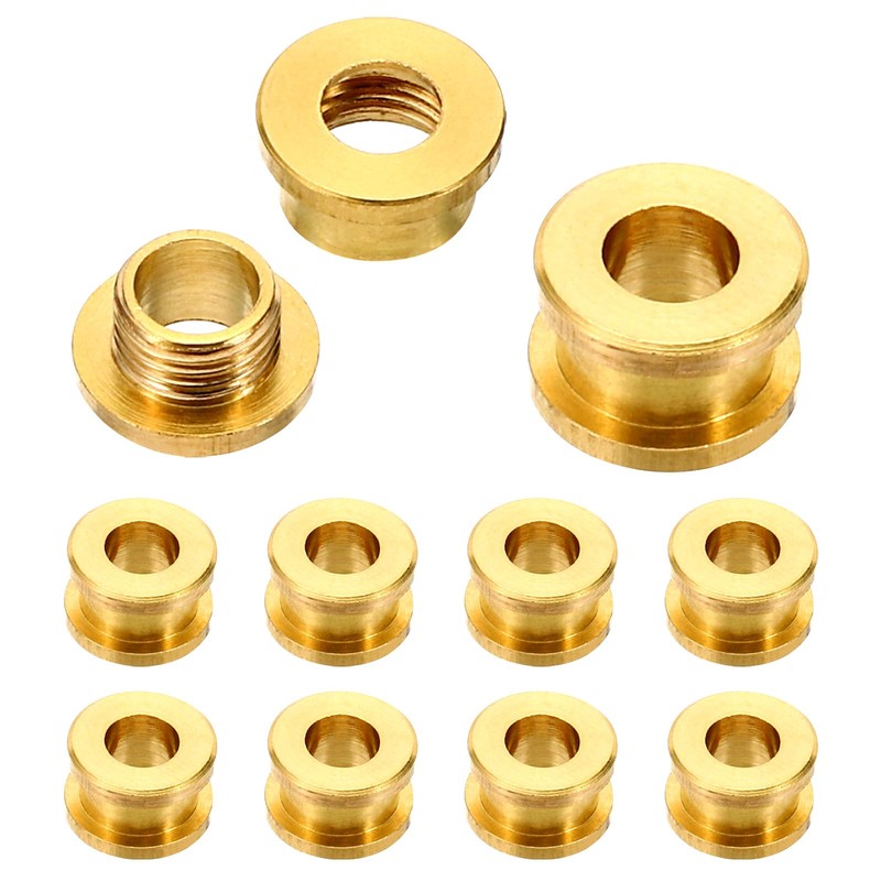 - Specification: Size: 10x6.5mm/0.39x0.26 inch; Hole diameter: 5mm(1/5 inch); Opening diameter: 8mm(1/3 inch); Middle slot width:3.5mm(1/7 inch); Material: Solid Brass; Color:Brass Tone; Packing List:10 x Brass Hole Eyelets