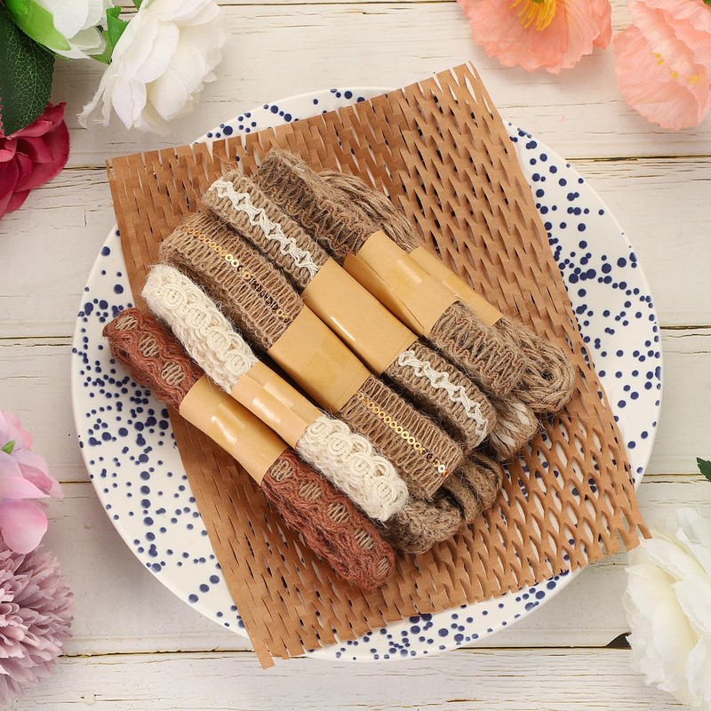 Lace craft ribbons are woven from rustic jute Twine String, soft and durable, with a classic and vintage look, highly decorative, and perfect for crafts.
