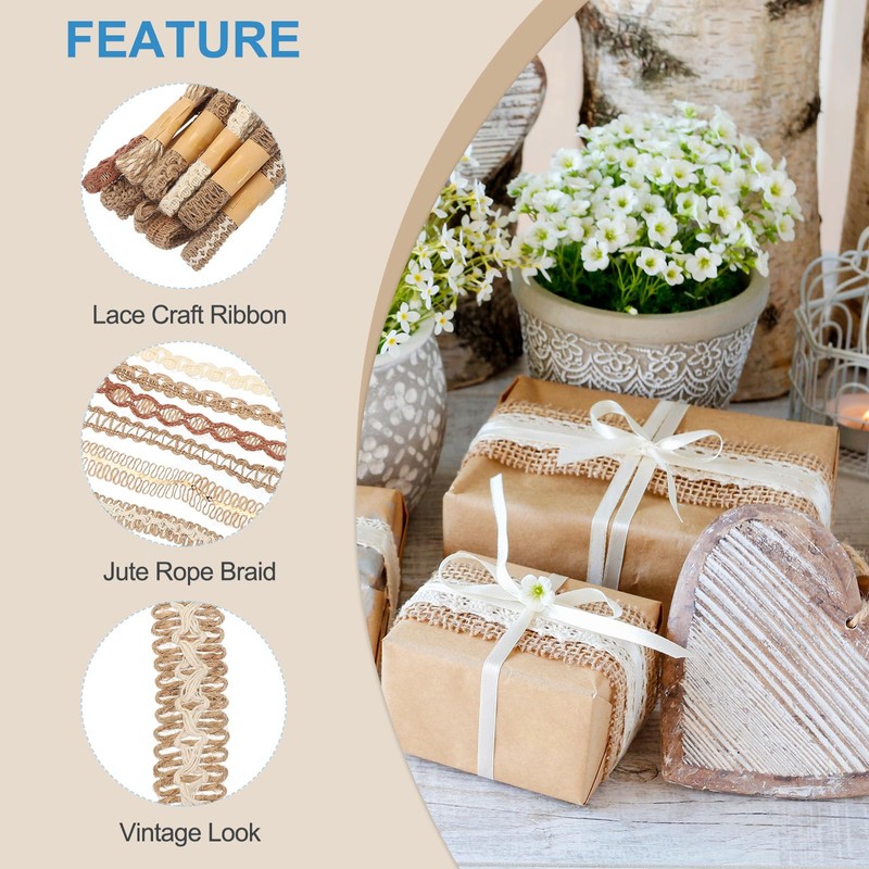 - Advantage: Lace craft ribbons are woven from rustic jute Twine String, soft and durable, with a classic and vintage look, highly decorative, and perfect for crafts.