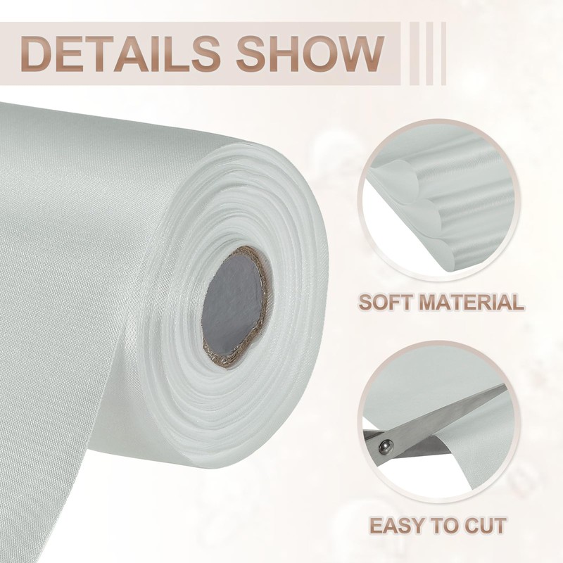 - Color: Silver; Material: Cloth; Size: 6 Inches x 22 Yards (15 cm x 20 m); Packing List: 1 Roll Satin Ribbon