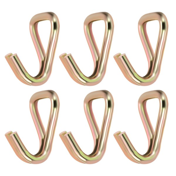 PATIKIL 6 Pack Ratchet Double J Hook Load 6600 LBS for 9mm Tie Down Strap Webbing on Car Truck Trailers Towing Strap, Gold