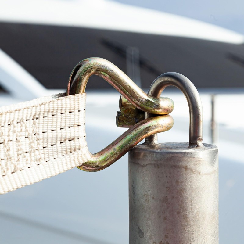 The double J-shaped hook end fits standard 9mm wide webbing. It has a high load capacity. Hooks are heat-treated for higher abrasion and corrosion resistance. Easy to install and remove.