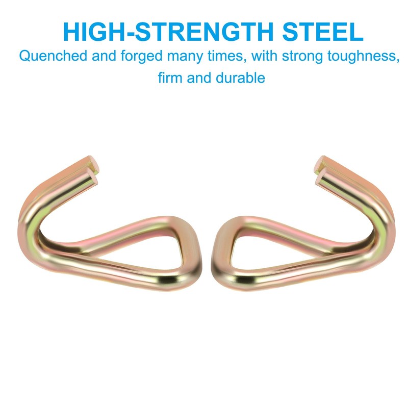 - Advantage: Double J-shaped hook end fits standard 1-inch wide webbing. It has a high load capacity. Hooks are heat-treated for higher abrasion and corrosion resistance. Easy to install and remove.