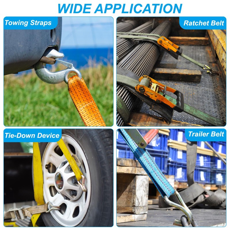 - Application: Tie-down straps replace the ratchet end of tie-downs, ratchet straps, trailer straps, and more.