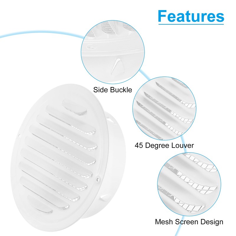 2. Screen Mesh Design: The air vent features a built-in screen mesh design and 45 degree inclined louver design, allowing for proper ventilation while effectively preventing dust, rain, and wind from entering your living space.