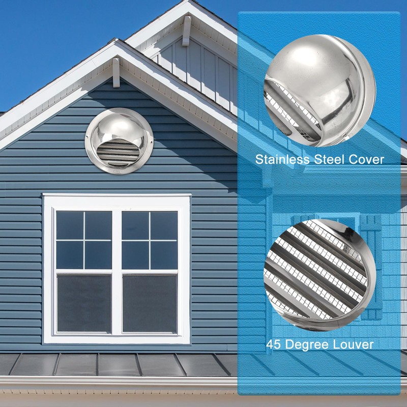- Advantage: 1. Our Stainless Steel Air Outlet Vents are constructed with 201 stainless steel, ensuring durability and resistance to corrosion, making them suitable for long-term use. 2. Screen Mesh Design: The air vent features a built-in screen mesh design and 45 degree inclined louver design, allowing for proper ventilation while effectively preventing dust and debris from entering your living space