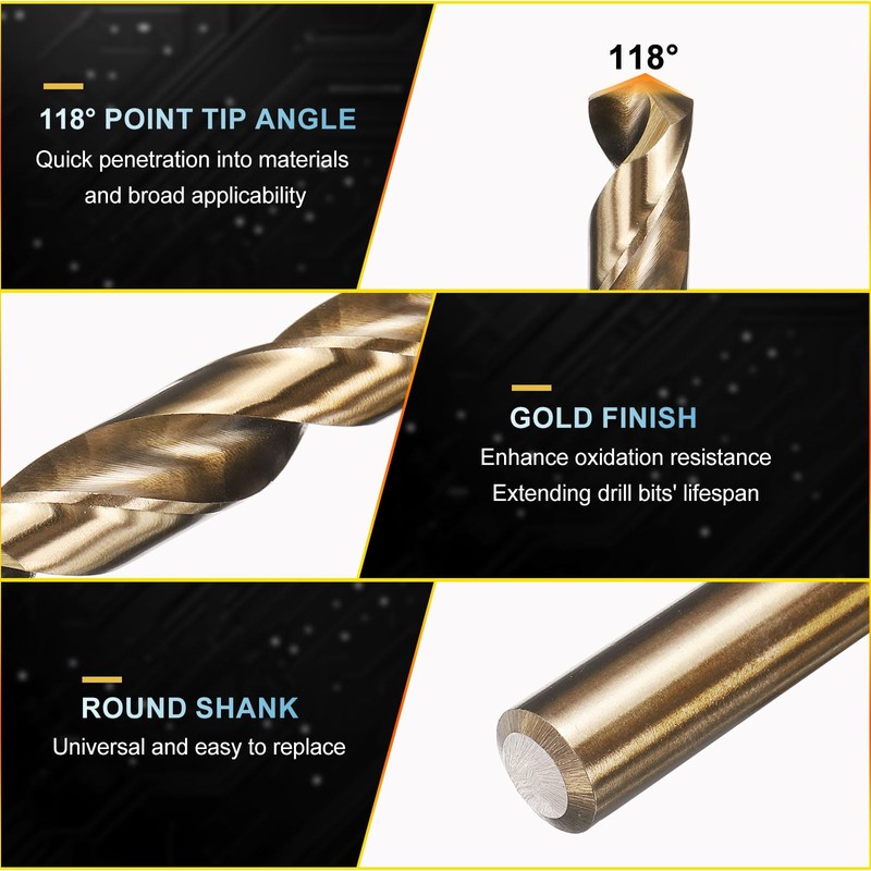 - FEATURE: 4341 High-Speed Steel (HSS) Twist Drills excel in medium-low speed, high-impact, and cost-sensitive applications. The Gold finish can further enhance the drill bit's wear and corrosion resistance, thereby extending its service life.