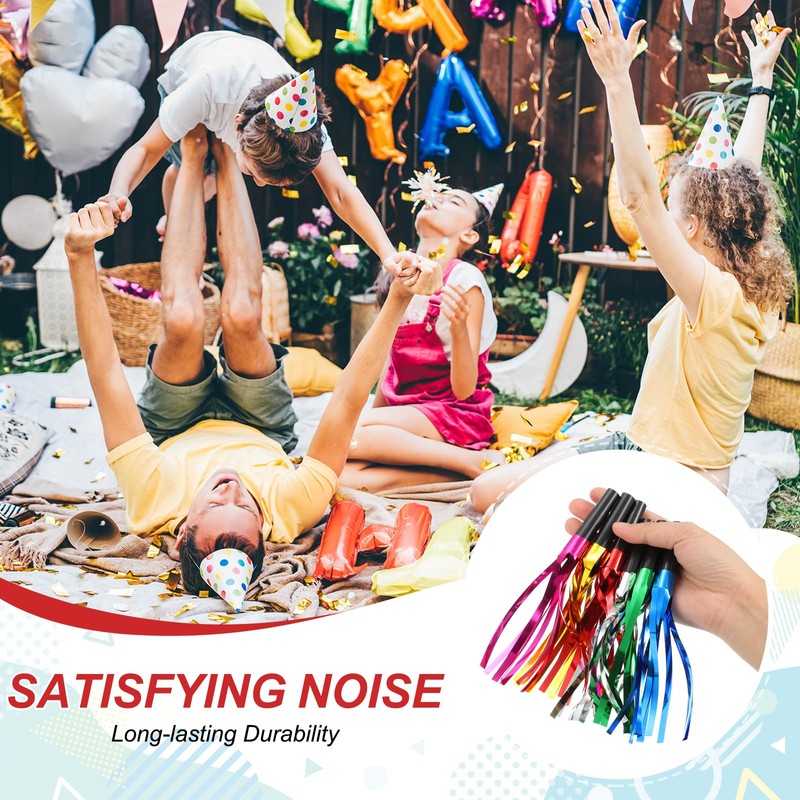 - Application: The fringed musical blowout whistle is great for creating noise and adding excitement to celebratory events. Widely used for various occasions such as birthday parties, New Year celebrations, weddings, and more, where it can help to enhance the joyful atmosphere.