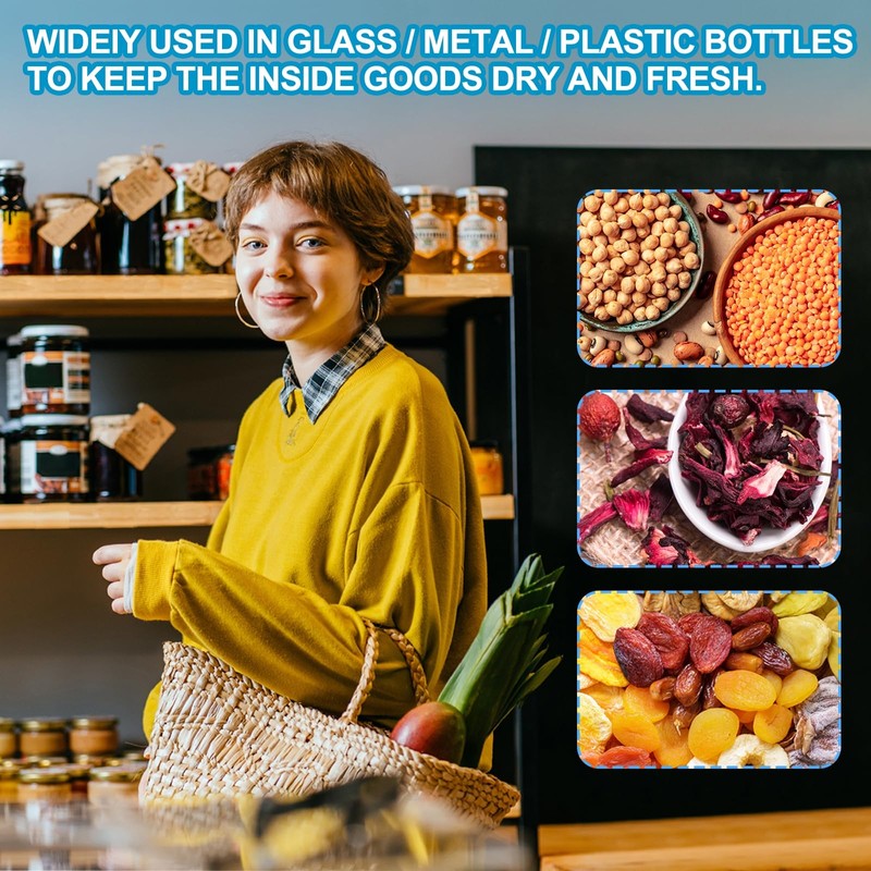 - NOTE: There should be no water or oil on the bottle mouth during installation; Avoid direct sunlight and high temperature storage; The liner is best used for sealing dry items, is not suitable for oily applications, and avoids overfilling the container. Please confirm the outer diameter of the bottleneck or the inner diameter of the bottle cap before purchasing;