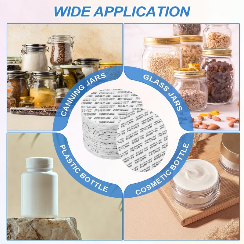 - Application: These Pressure Sensitive Seals can be used with different containers and are suitable for glass, plastic, metal cans and round containers with metal or plastic lids and closures. It can be used to seal seasonings, cosmetics, hair care supplies, detergents, toiletries, and other powders, solids, etc.