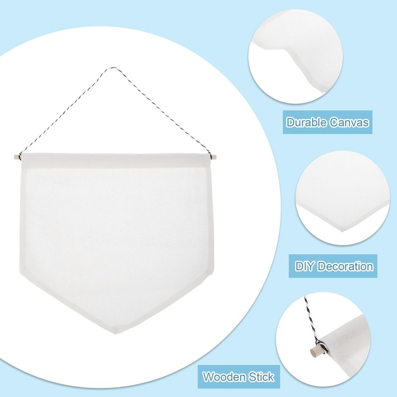 - Color: White; Banner Size: 11.81 inch x 10.83 inch/300mm x 275mm(L*W). Wooden Rod Size: 0.31 inch x 11.81 inch/8mm x 300mm(D*L); Packing List: Total 6 pcs blank canvas banners in package.