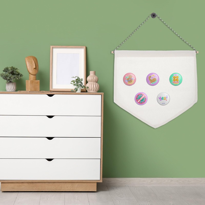 - Application: The blank canvas banner can be used to hold pin badges, patches, buttons, stickers, stamps, brooch, enamel pins, and other fun trinkets. You can hang it anywhere in your home, such as windows, doors, refrigerators, or walls. Great decoration to make a simple and stylish feeling.